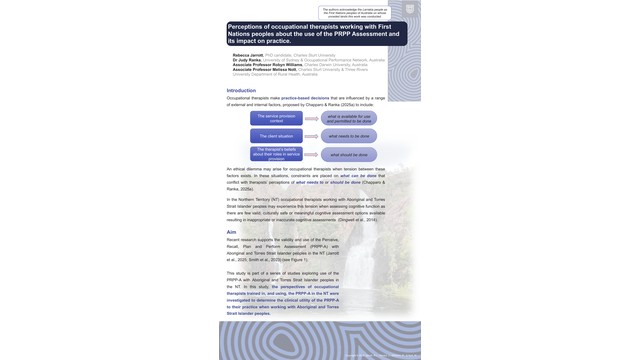 Perceptions of occupational therapists working with First Nations peoples about the use of the PRPP Assessment and its impact on practice