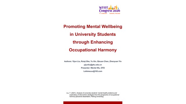 Promoting mental wellbeing in university students through enhancing occupational harmony