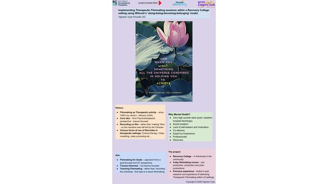 Implementing therapeutic filmmaking sessions within a Recovery College setting using Wilcock’s ‘doing-being-becoming-belonging’ model