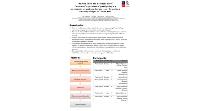 “It feels like I am a student here”; Consumers’ experiences of participating in a psychosocial rehabilitation centre located on a university campus in Tehran, Iran