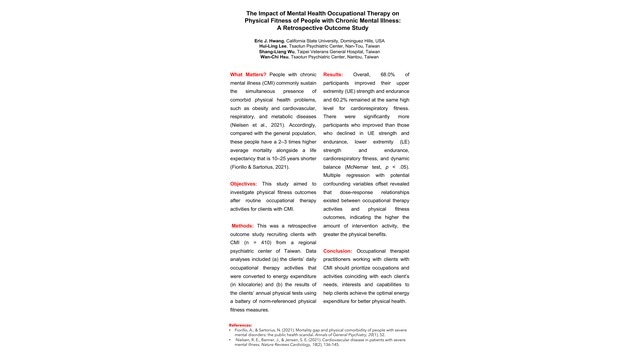The impact of mental health occupational therapy on physical fitness of people with chronic mental illness: a retrospective outcome study
