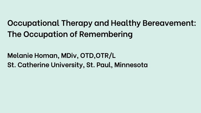 Occupational therapy and healthy bereavement: The occupation of remembering