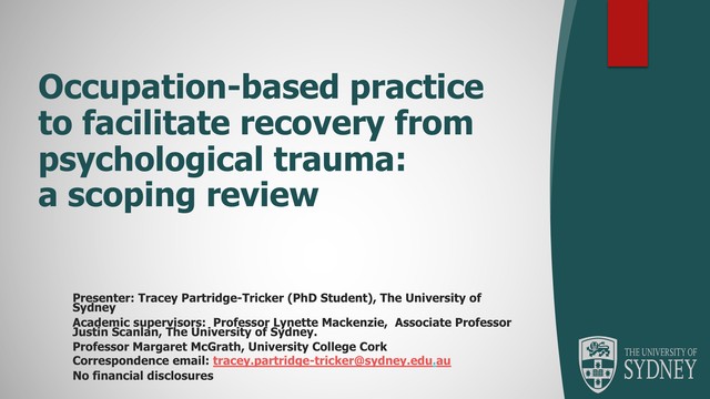 Occupation based interventions to facilitate recovery from psychological trauma: A scoping review.