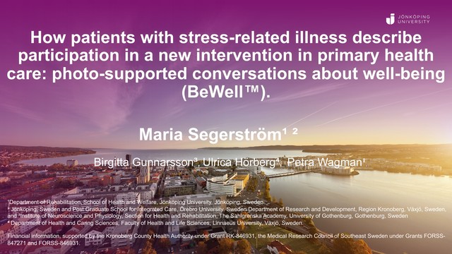 How patients with stress-related illness describe participation in a new intervention in primary health care: photo-supported conversations about well-being (BeWell™).