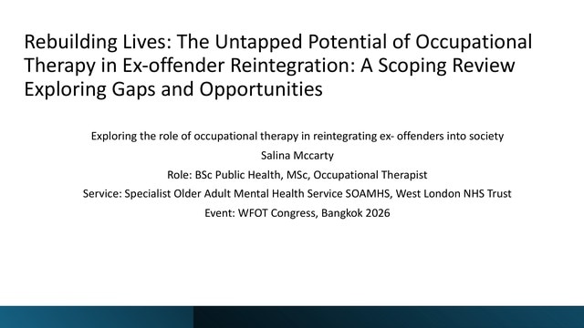 Rebuilding Lives: the untapped potential of occupational therapy in offender rehabilitation.