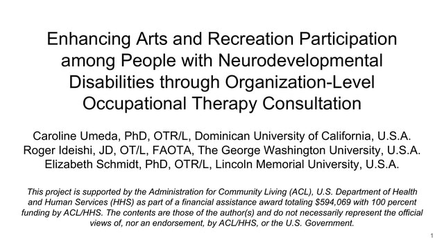 Enhancing arts and recreation participation among people with neurodevelopmental disabilities through organization-level occupational therapy consultation