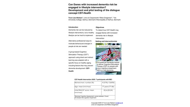 Can Danes with increased dementia risk be engaged in lifestyle intervention? Development and pilot testing of the dialogue concept CST-Health